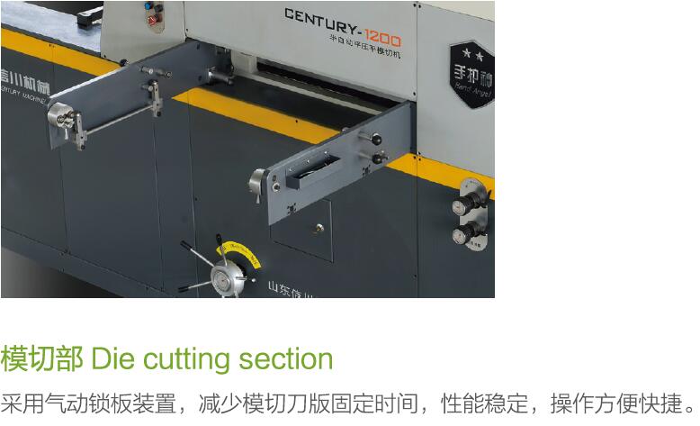 與國內(nèi)外其它半自動模切機相比,它具備半自動機器的功能,且價格低、體積小、占地面積少等優(yōu)點,是中、小企業(yè)特別是場地受限企業(yè)的首選產(chǎn)品。