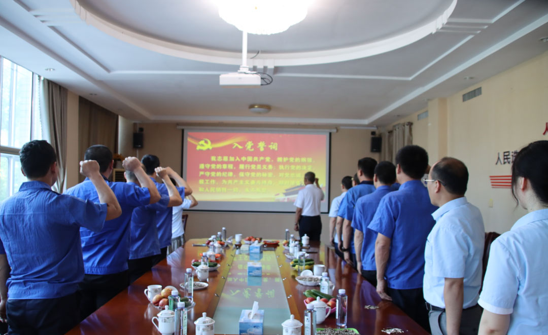 在邊繼慶書記的帶領(lǐng)下,支部新老黨員一起高舉右手,再次莊嚴(yán)宣誓?!拔抑驹讣尤胫袊?guó)共產(chǎn)黨……隨時(shí)準(zhǔn)備為黨和人民犧牲一切,永不叛黨。”